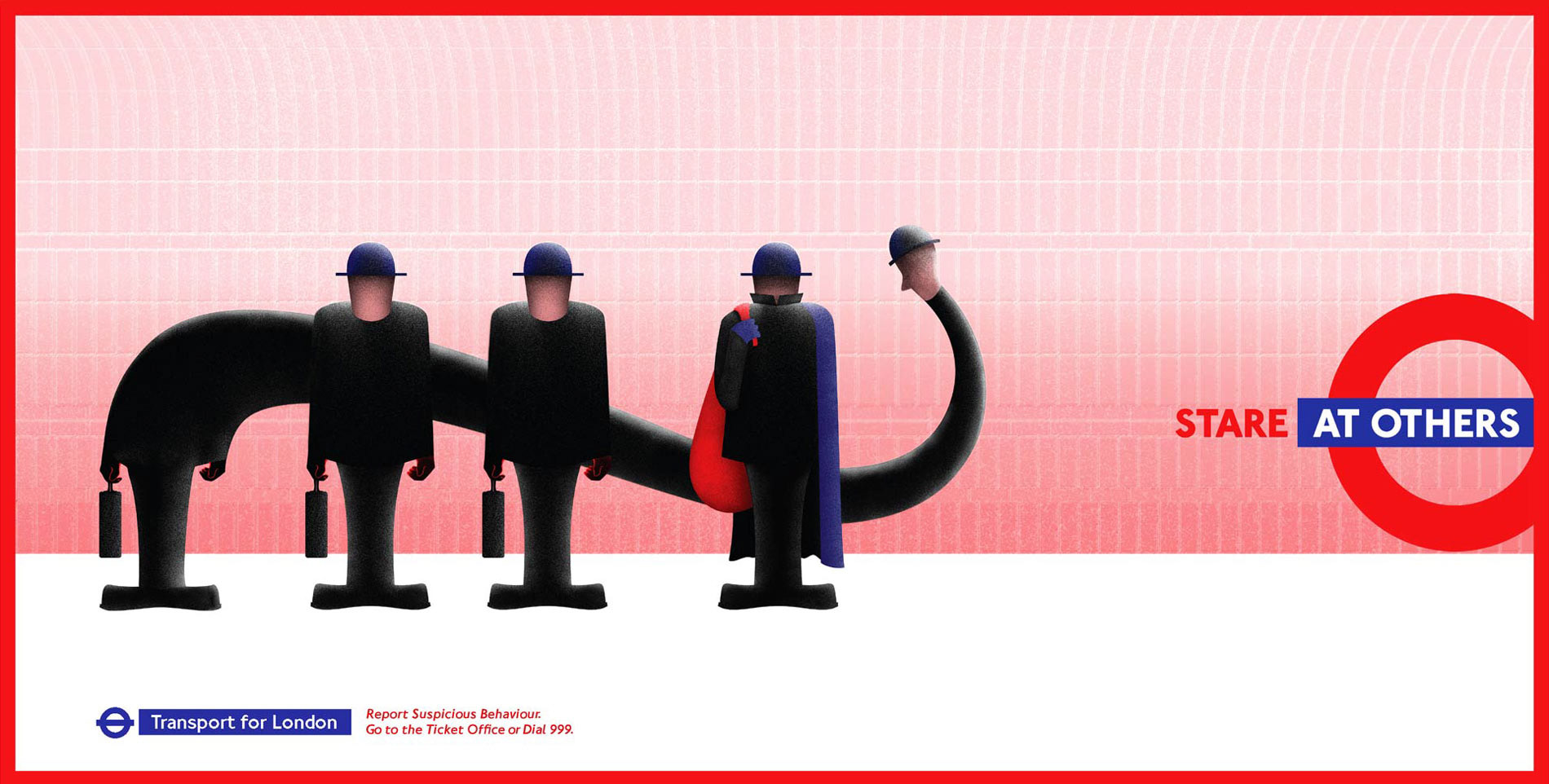 A campaign that reframes suspicious activity through exaggerated, character-driven visuals—prompting commuters to notice and act.